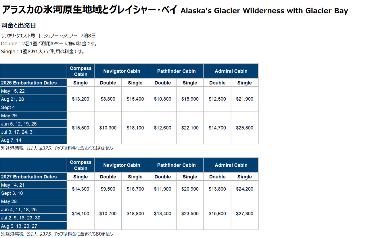 乗船日・日程・料金