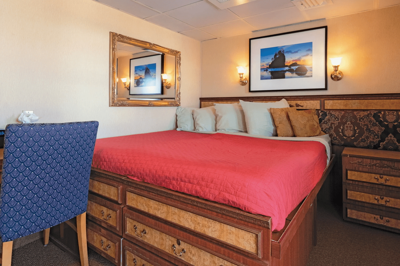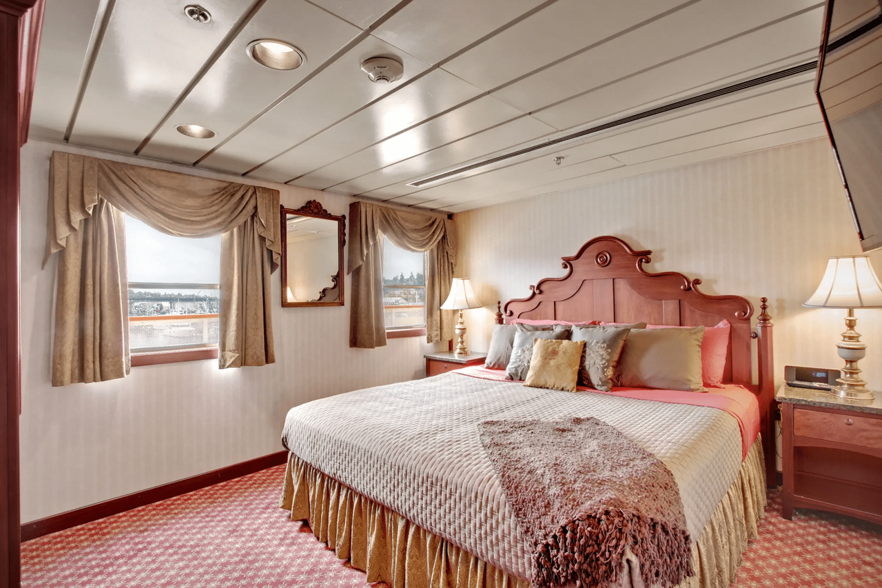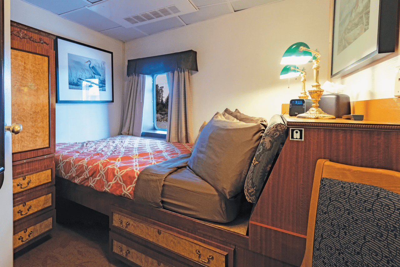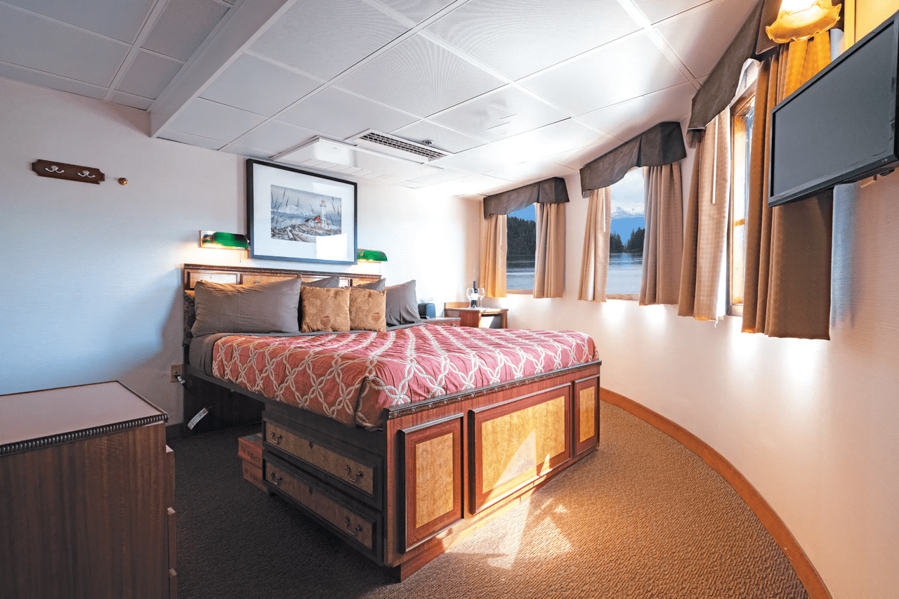 アラスカや太平洋北西部を中心に航海する、クラシックな外観と木製装飾が特徴の「ヴィンテージ蒸気船風」客船。