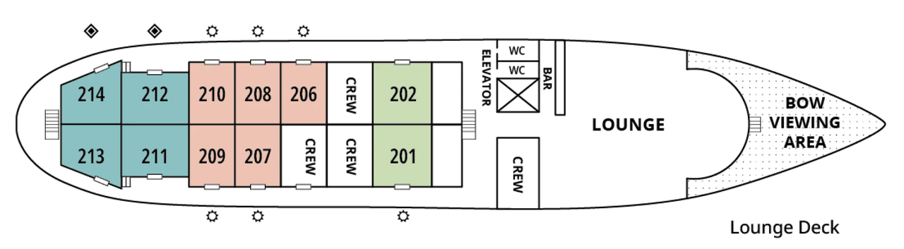 乗客定員:86名、キャビン数: 43室